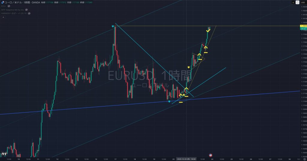 損益|25年12月23日:EURUSD(ユーロドル)利確 : 反転パターン